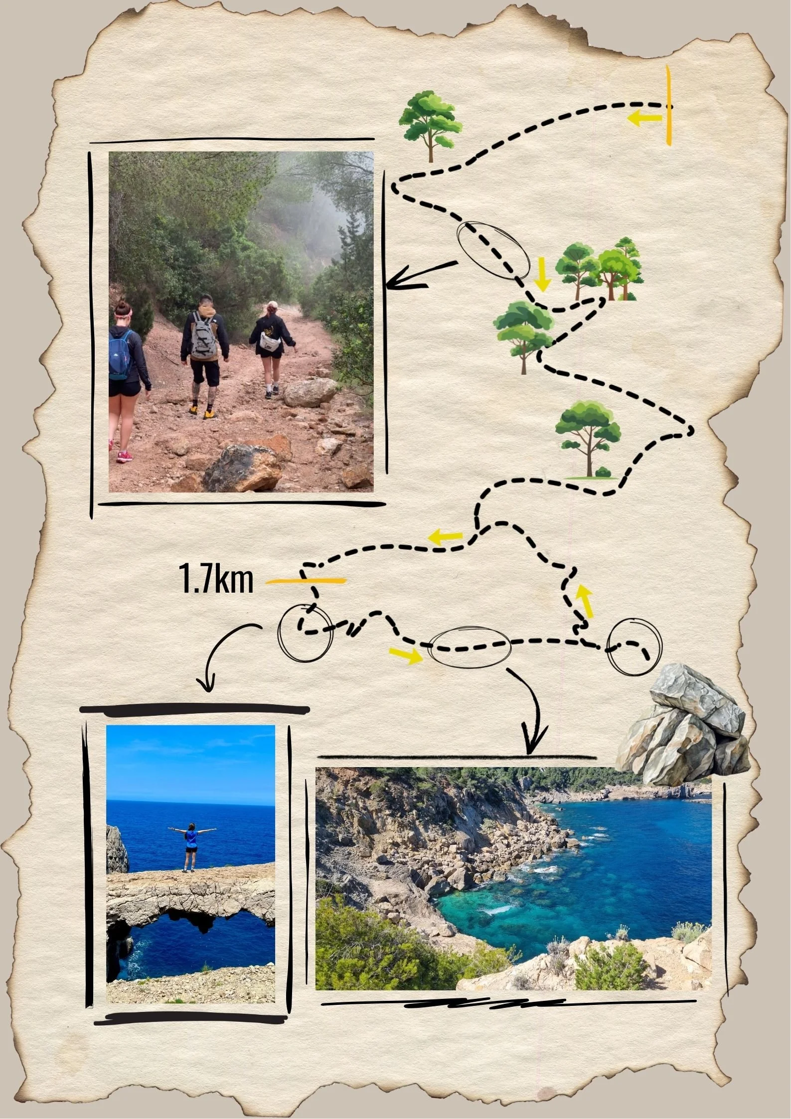 Your adventure will begin at the Cala Aubarca parking area. The trail has a moderate difficulty level.
